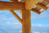 In addition to building log shells, we are also able to build specialty structures such as log bridges and small log outbuildings. The photos show a log bridge crossing our seasonal creek. The log stringers are 25' long and the log railing is made of dry pine. The rails and posts are secured using counter-sunk lag bolts. All bolt ends are covered with wooden plugs. The outbuilding shown is a log gazebo with a spectacular view of Hudson Bay mountain. Log rafters, rails and spindles are made using dry pine logs. The spindles are secured to the rails using wooden dowels. Contact us for information and pricing on log bridges and outbuildings. |